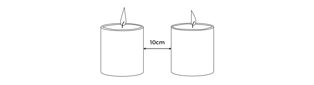 SPRENDIMAS: Uždegtas žvakes pastatykite bent 10 cm atstumu viena nuo kitos, kad išvengtumėte tirpimo ir deformacijos dėl gretimų žvakių šilumos.