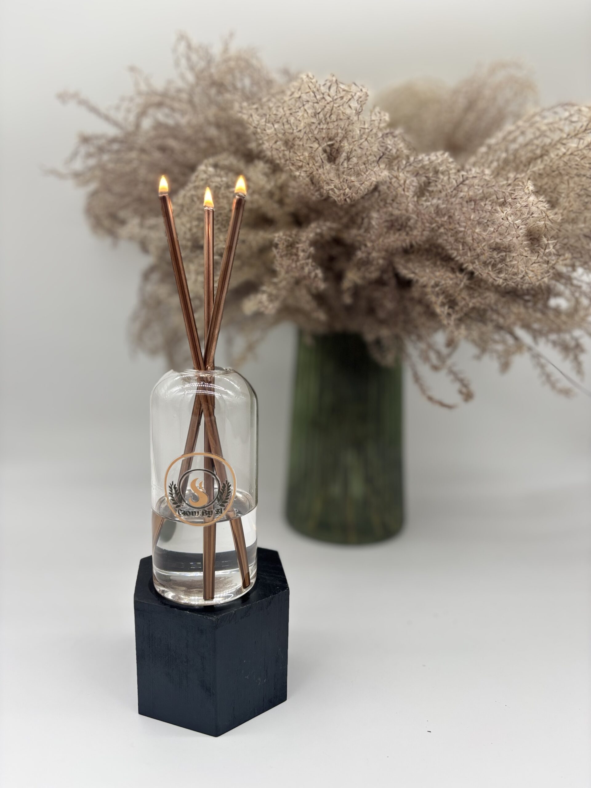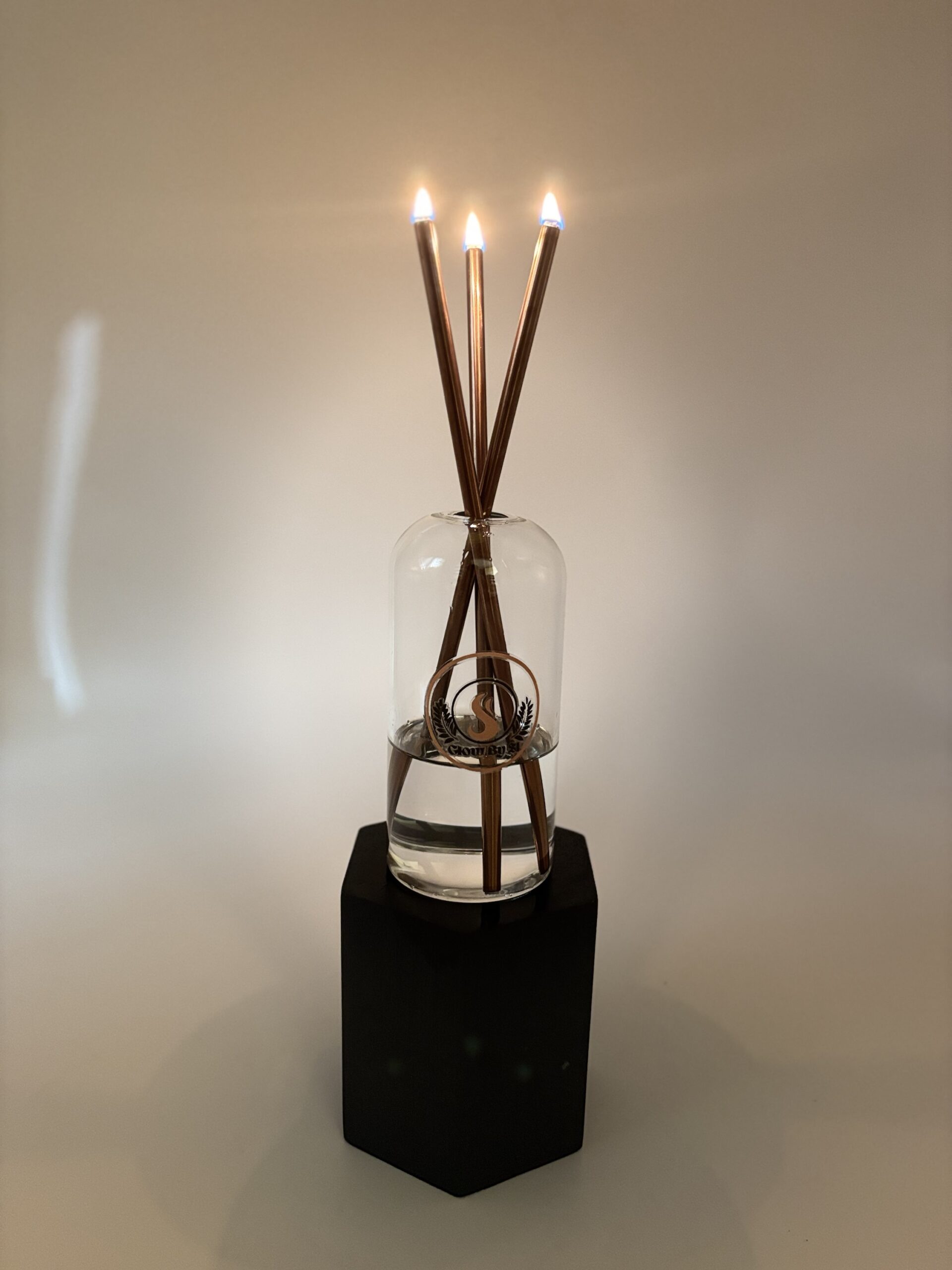 Rinkinį sudaro stilinga vazelė, trys specialios degimo lazdelės, kurios dega kaip žvakės, 250 ml specialaus degimui skirto aliejaus ir patogus piltuvėlis lengvam užpildymui. Kiekviena detalė apgalvota taip, kad naudojimas būtų paprastas, saugus ir malonus.