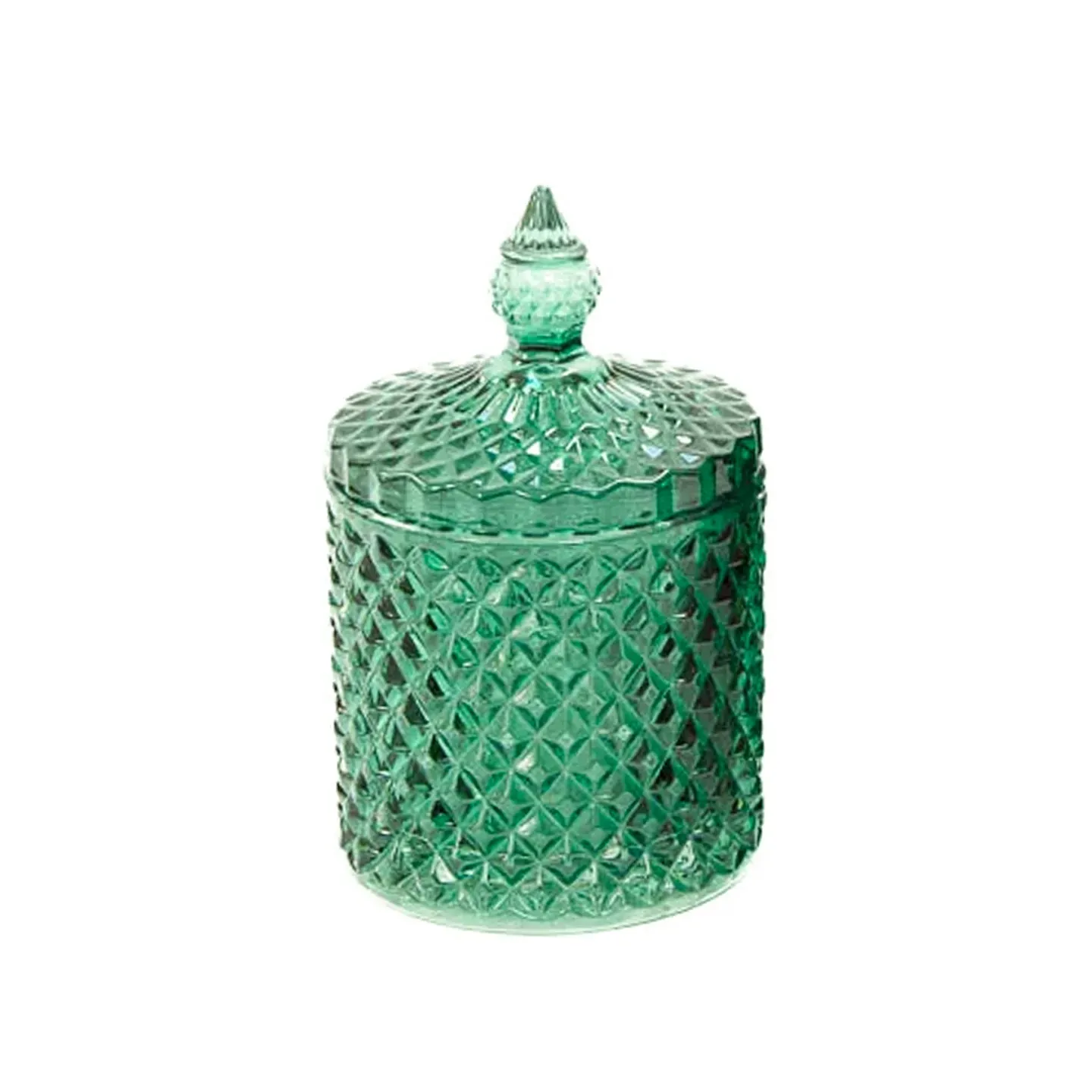 Stiklinis indas žvakių gamybai, taip pat gali būti naudojamas kaip cukrinė arba dekoratyvinis stiklinis indas. Turi praktišką stiklinį dangtelį, kurio dėka žvakė ilgai išlaiko intensyvų kvapą.