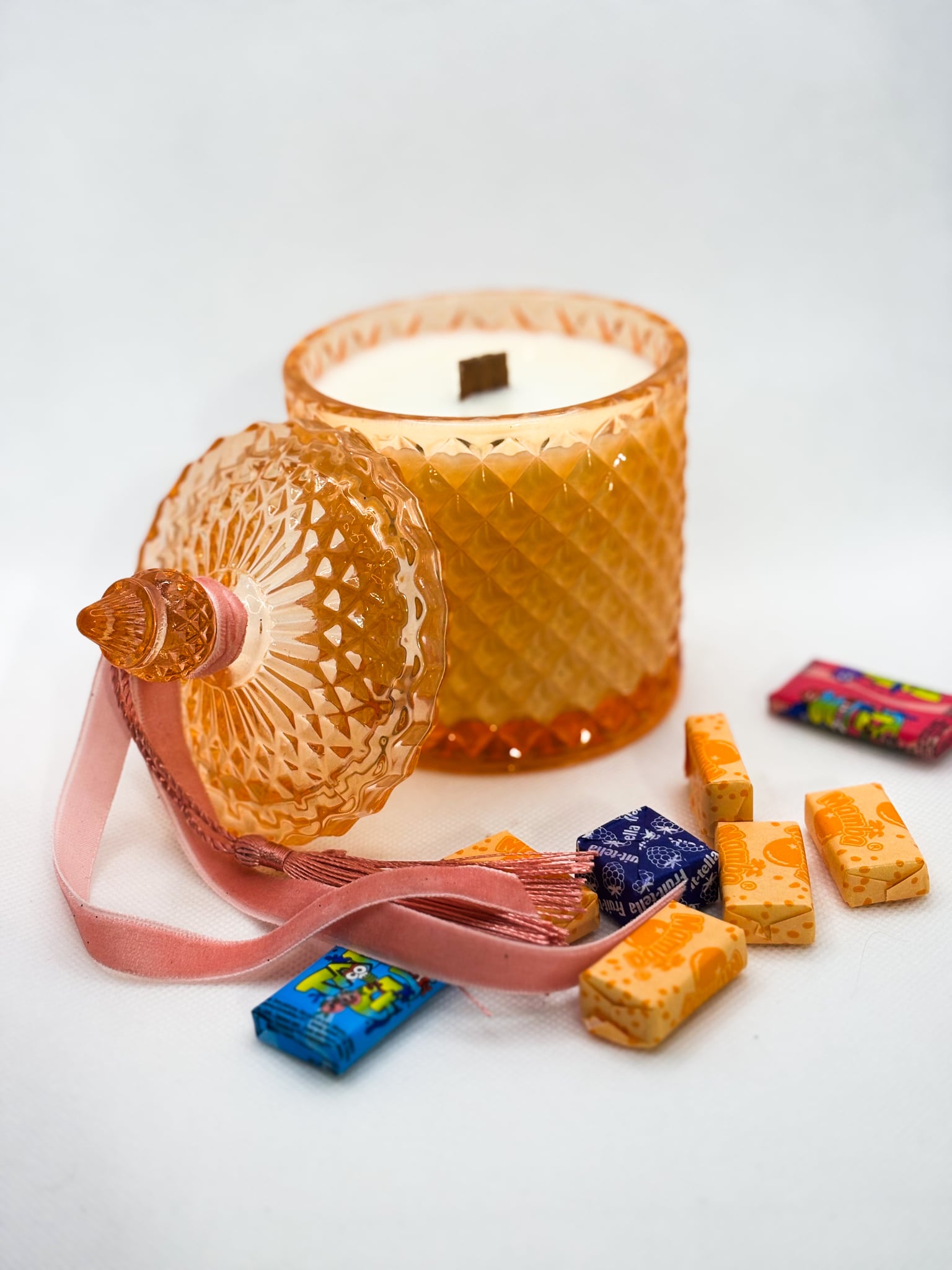 Leiskis į vaikystės prisiminimus su šia žaisminga „Bubblegum“ kvapo žvake. Saldus ir gaivus aromatas primena ką tik išpūstą kramtomos gumos burbulą – kupiną džiaugsmo, spalvų ir nerūpestingų akimirkų.
