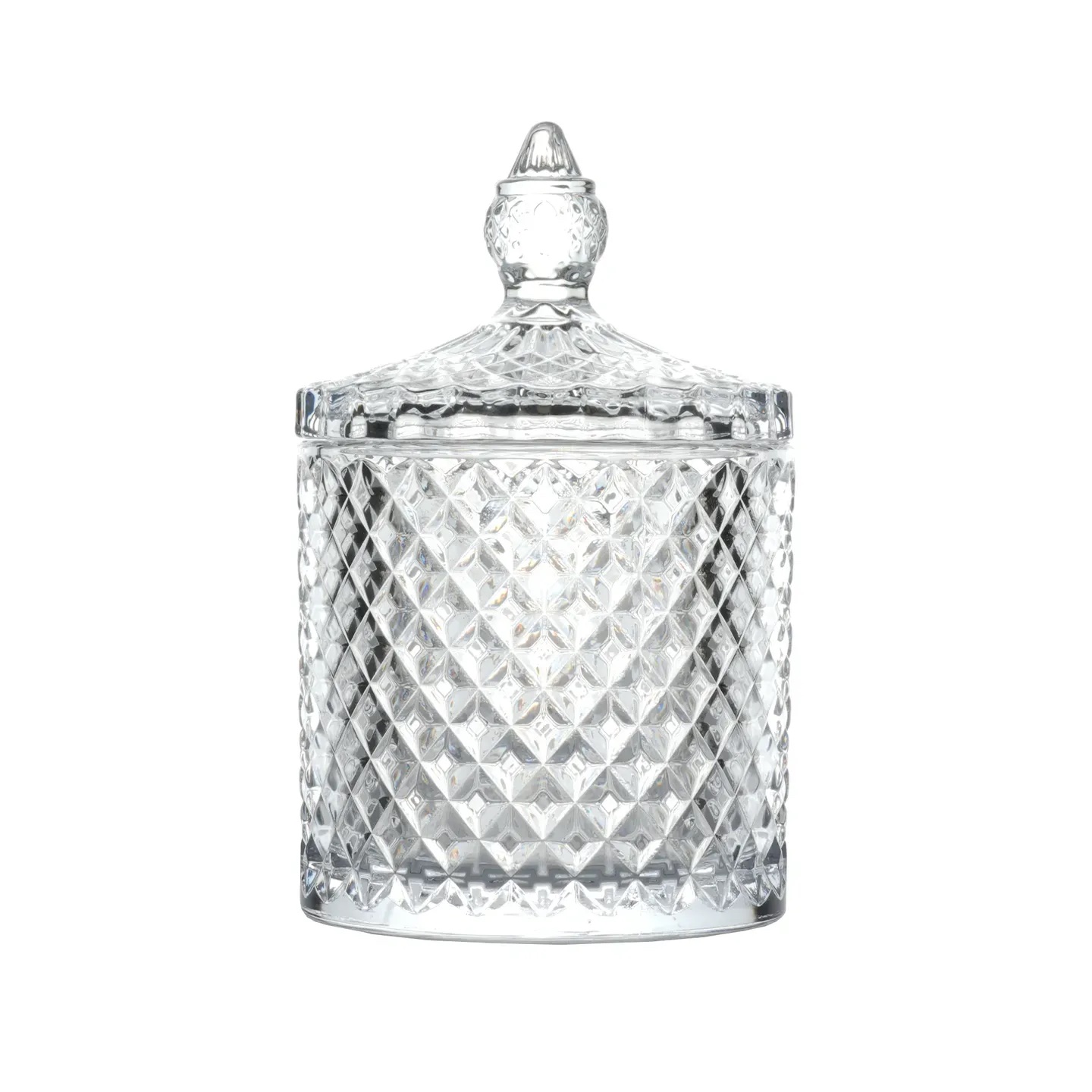 Diamond stiklinis indelis su dangteliu – prabangiai žvilgantis, iš deimanto pjūvio rašto stiklo pagamintas indelis.