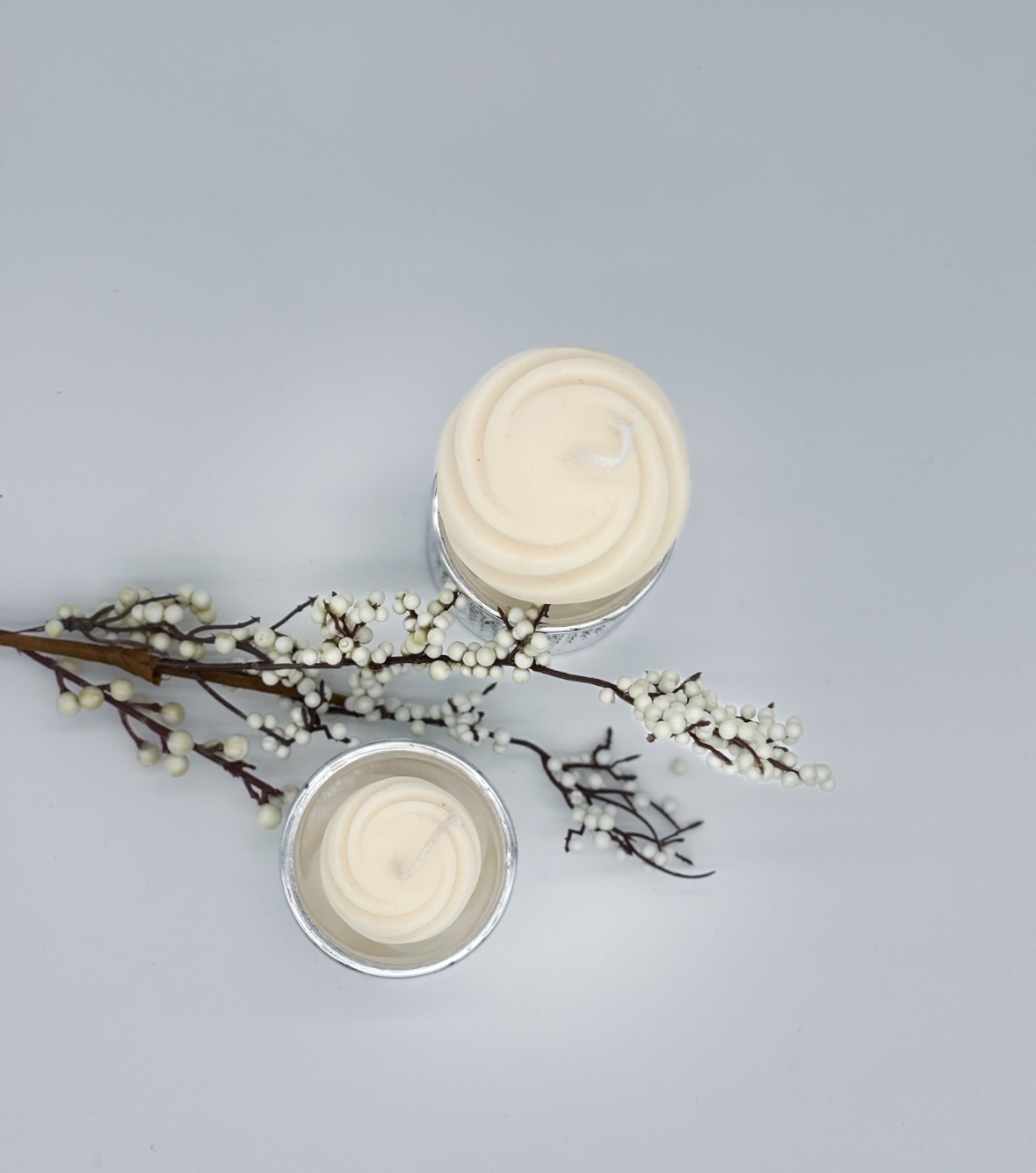 Ši sojų vaško žvakė turi derantį mažajį sūkurį, o visą rinkinį galite išsirinkti čia
