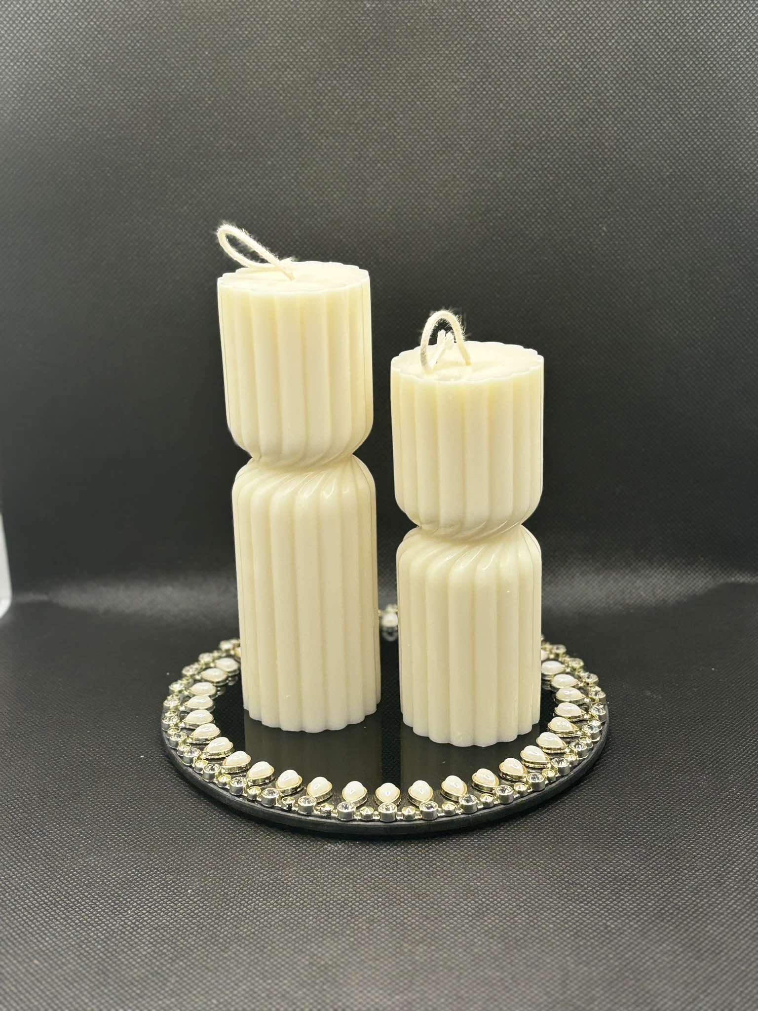 Atraskite išskirtinį stiliaus ir jaukumo derinį su mūsų unikaliomis sojų vaško žvakėmis. Šios grakščios, dvigubo cilindro formos žvakės su vertikaliomis linijomis yra elegantiškos ir modernios, todėl puikiai papildys Jūsų namų interjerą. Pagamintos iš natūralaus sojų vaško, jos yra draugiškos aplinkai, dega švariai ir skleidžia malonią šviesą, suteikiančią šilumos ir ramybės.