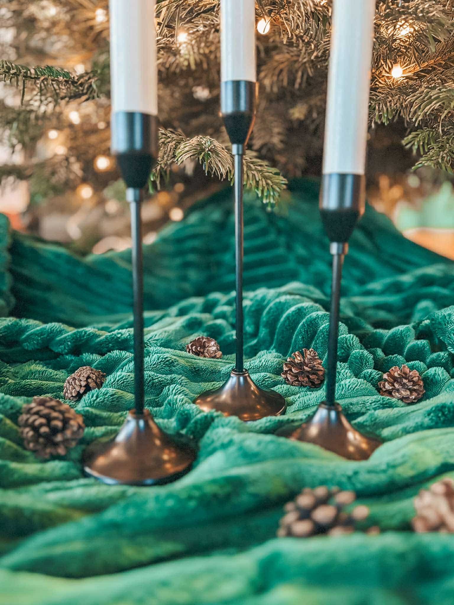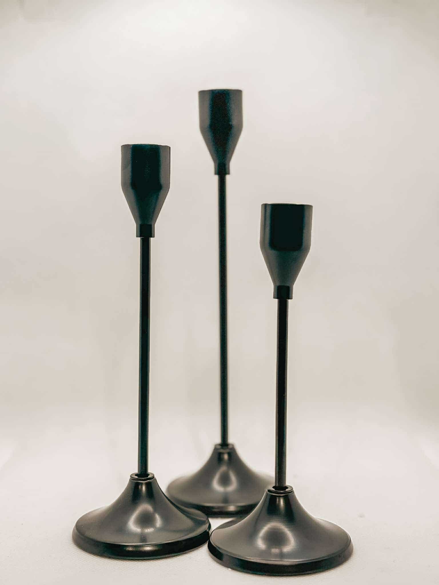 Sukurkite jaukią ir stilingą atmosferą savo namuose su šiuo išskirtiniu žvakidžių komplektu. Trijų skirtingo aukščio žvakidės pasižymi minimalistiniu ir moderniu dizainu, kuris lengvai pritaikomas tiek klasikinio, tiek šiuolaikiško interjero erdvėse. Juodos spalvos paviršius suteikia solidumo ir elegancijos, o skirtingi aukščiai kuria harmoningą ir dinamišką kompoziciją. Šis komplektas puikiai tinka klasikinėms stalo žvakėms ir gali tapti pagrindiniu stalo, lentynos ar šventinio dekoro akcentu. Jis ne tik suteiks jaukumo kasdienėms akimirkoms, bet ir taps nepakeičiama detalė švenčių, vestuvių ar romantiškų vakarų metu. Žvakidžių komplektas „Elegant black“ yra puikus pasirinkimas ieškantiems išskirtinių, bet kartu praktiškų namų dekoro detalių.